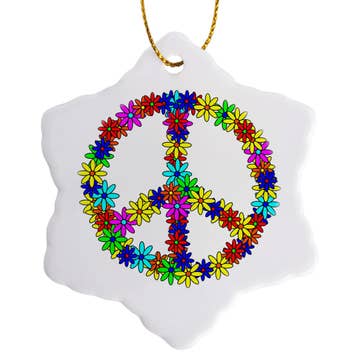 Peace symbol ornament. 2.75 W X 3 H This Ornament is made with 18 Gauge Steel. Do to the Natural Rusting Process color may vary slightly, Made In Prescott Arizona
