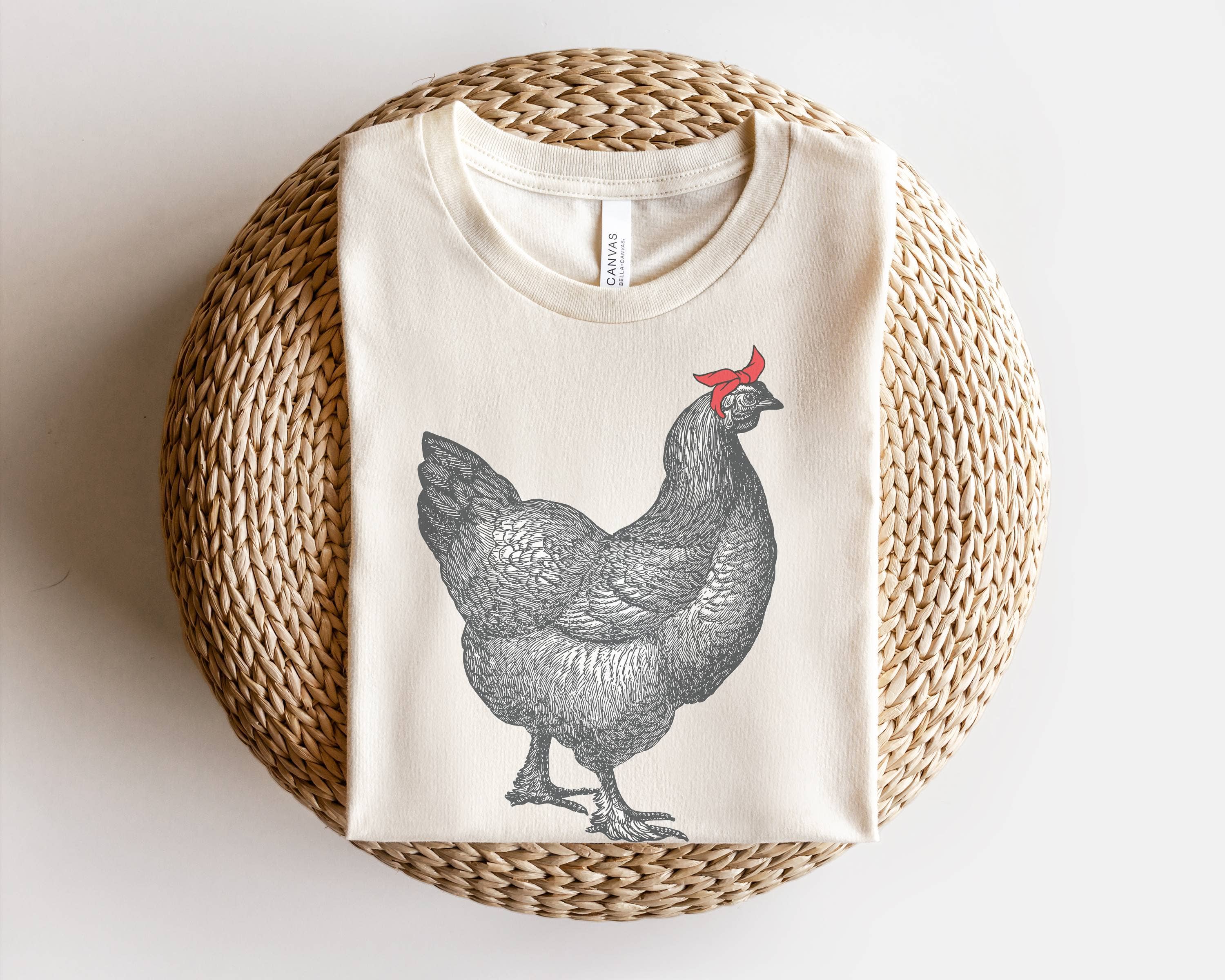 This women's Chicken Tee is designed and hand-printed in our Maine studio using eco-friendly, water-based ink. Each shirt is made from a tri-blend fabric that is soft and super comfy! Please see dimensions for sizing. I am happy to send you more detailed sizing information upon request!