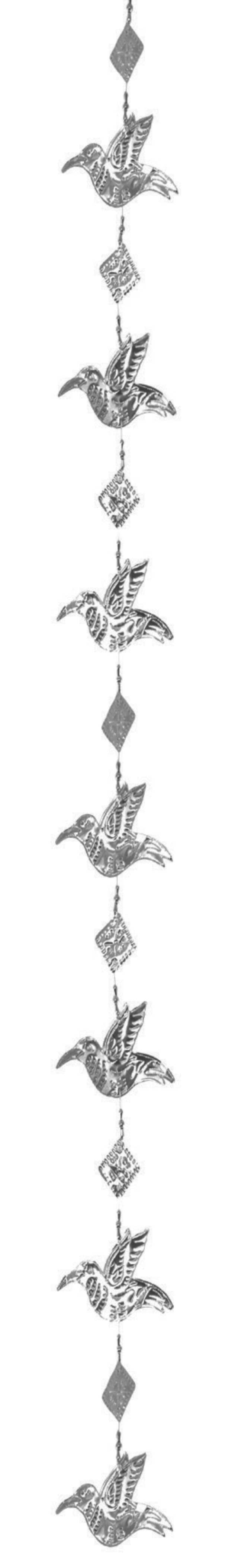 These mobiles are perfectly balanced for the most graceful movement. Pull and release the bottom string and watch them fly. Each is constructed of medium-density fiberboard, hand-painted with non-toxic acrylic paint, and decorated with dyed tagua nuts. Best enjoyed indoors in any room of the house. If hung outside, keep dry. These whimsical flyers are handcrafted by a woman-owned business in Colombia and packaged in custom-printed mailer boxes by another woman-owned business in Chicago. Wingspan: 22in. KEEP OUT OF REACH OF CHILDREN AGE 3 OR YOUNGER.
