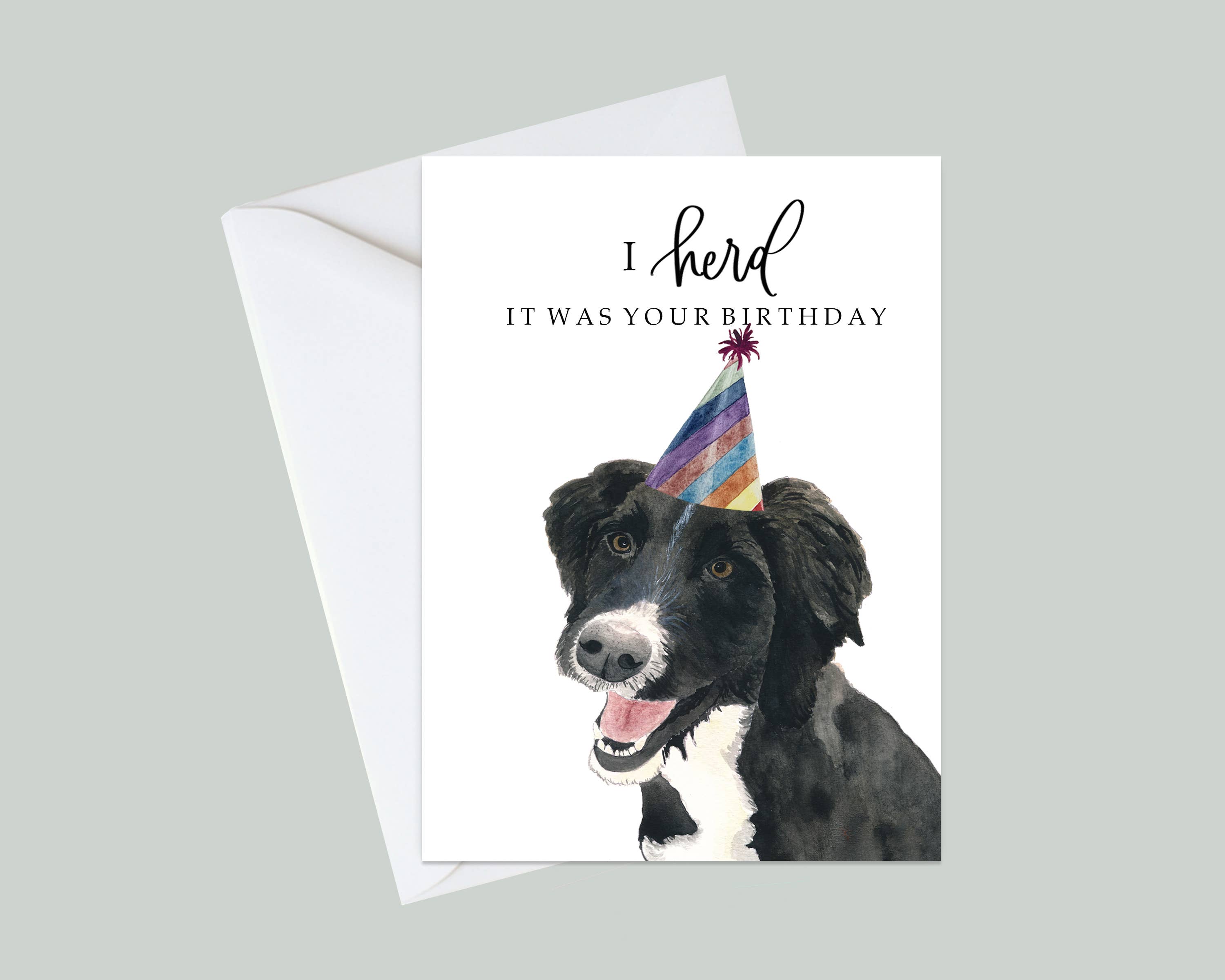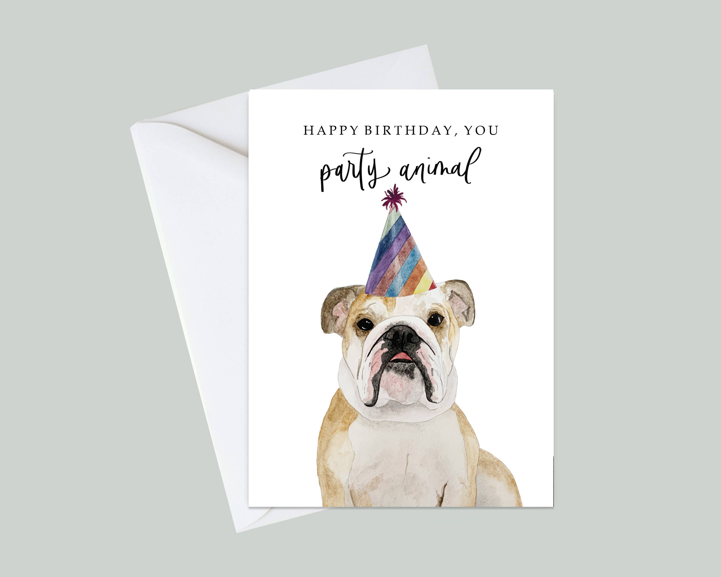 Who doesn't want a frenchie for their birthday!? Handpainted and printed on a 4.5x5" luxe card stock and packaged with a white euroflap envelope. Blank inside for customization.