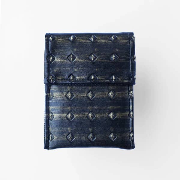 Recycled Cement Bag - Snap Closure - Multiple ID/Credit Card Pockets -Dollar Bill Pocket 4.5" L x 3.5" H Created from recycled cement bags, our men's wallet is functional and sleek while supporting global sustainability! This classic shape is thin enough to slip into your pocket with ease and durable for daily use. Recycled Cement Bag Snap Closure Multiple ID/Credit Card Pockets Dollar Bill Pocket 4.5" L x 3.5" H