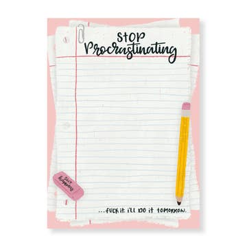 DETAILS: • wording: "Tea First Everything Else Later" • 3.5" x 8.5" • 50 tear-off sheets of heavy, recycled paper • Chipboard backer • Packaged in a waterproof clear sleeve Pencil is not included.