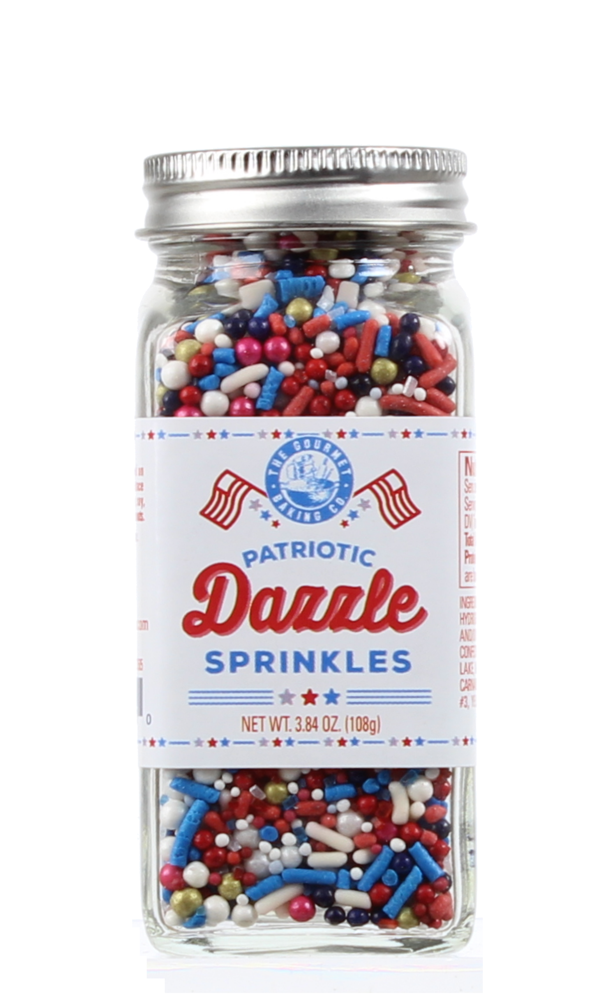 Our All American Sprinkles have vivid colors of Red, Blue, & White to make your 4th of July Baked Goods look like a "Bang". Sprinkles when added to a cake, adds a wonderful array of color that will make anyone celebrate! Jarred in our Old Fashioned Jar.
