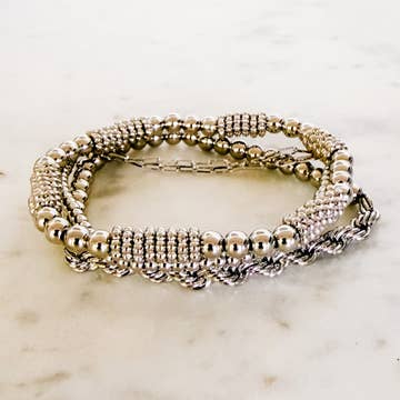 Bracelet Apart of the Strength Collection Set of 3: pyrite bracelets with pearls and gold-filled baby beads.