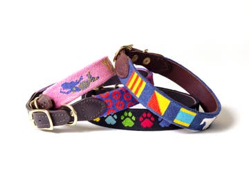 Get your game on with a dog collar in your favorite team's colors! Watch the game or toss around the football together sporting your fan gear. This Paw Paws dog collar is made with grosgrain ribbon sewn onto durable nylon webbing, quick release buckle and a D-ring for easy tag and leash attachment. XS 8”-12” X 1/2" S 10"-14” X 3/4" M 14"-20” X 1" L 18"-26” X 1"