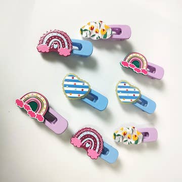 Wholesale Cloud & Rainbow Kids Hair Clips- Rainbow Colors