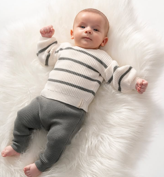 Stripe Sweater Knit Baby Pullover & Pants 2pc SET (Organic)