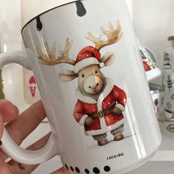 Santa Moose Christmas Mug - Cute Holiday Mug, Wildlife Mug