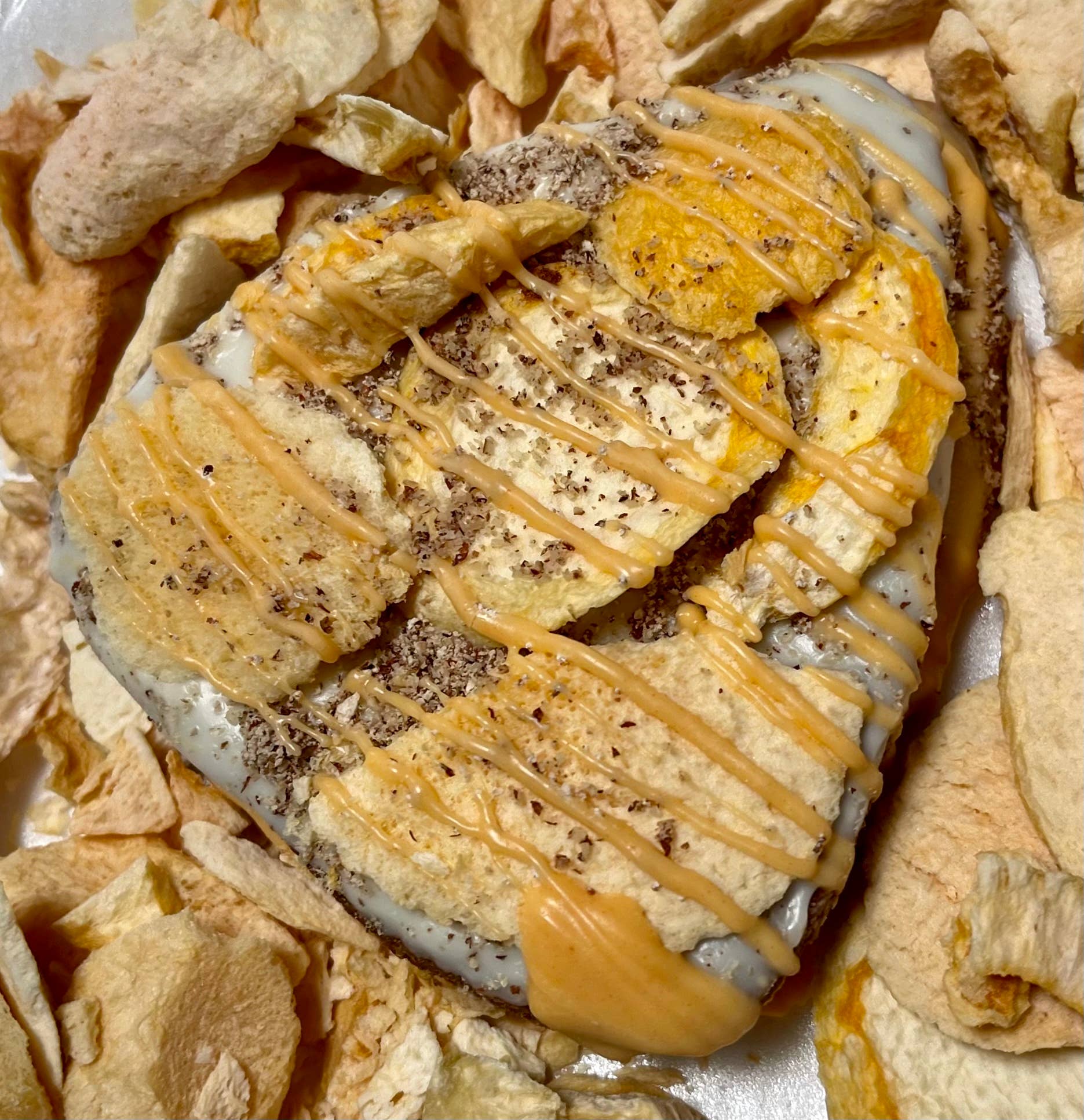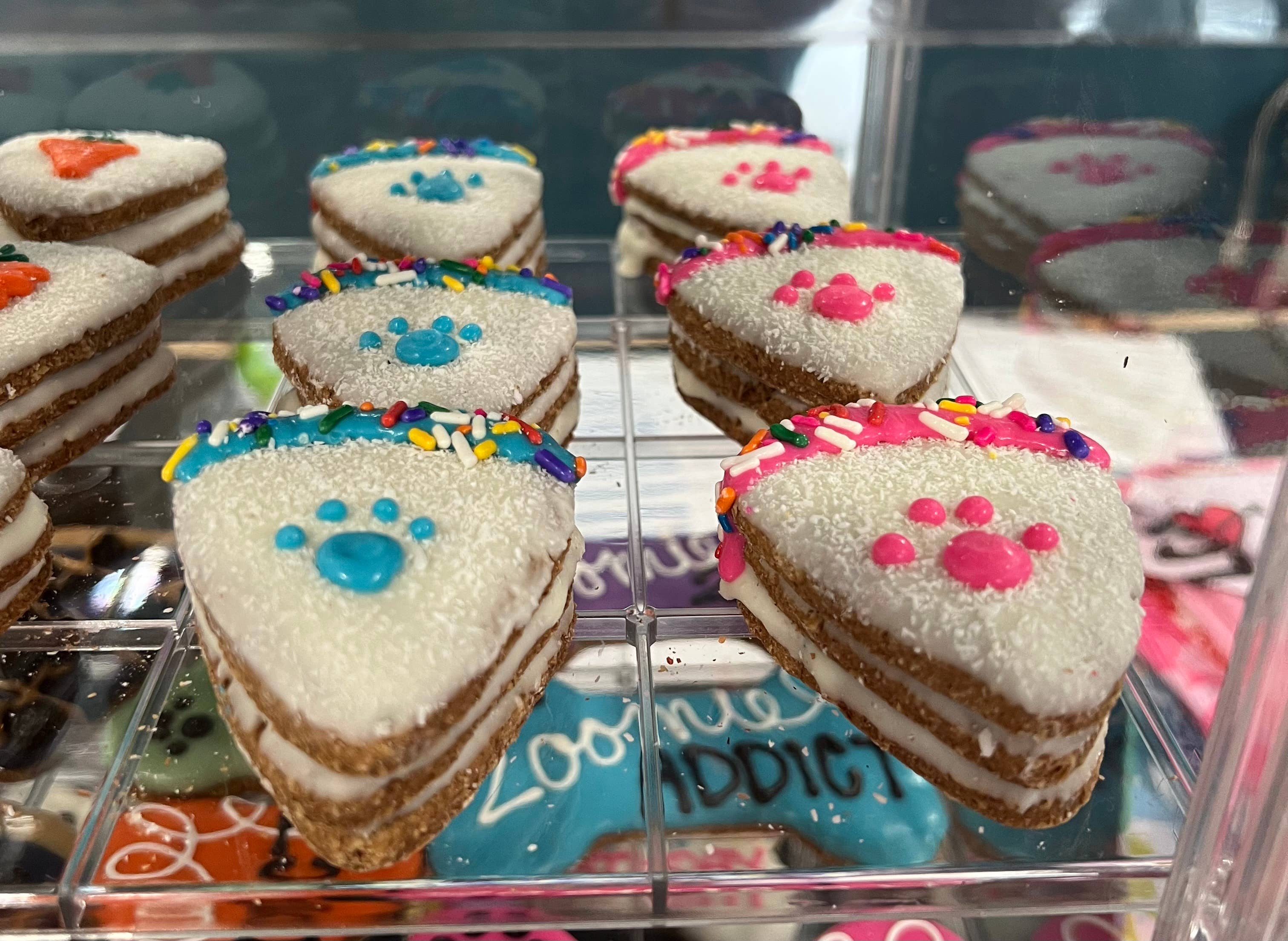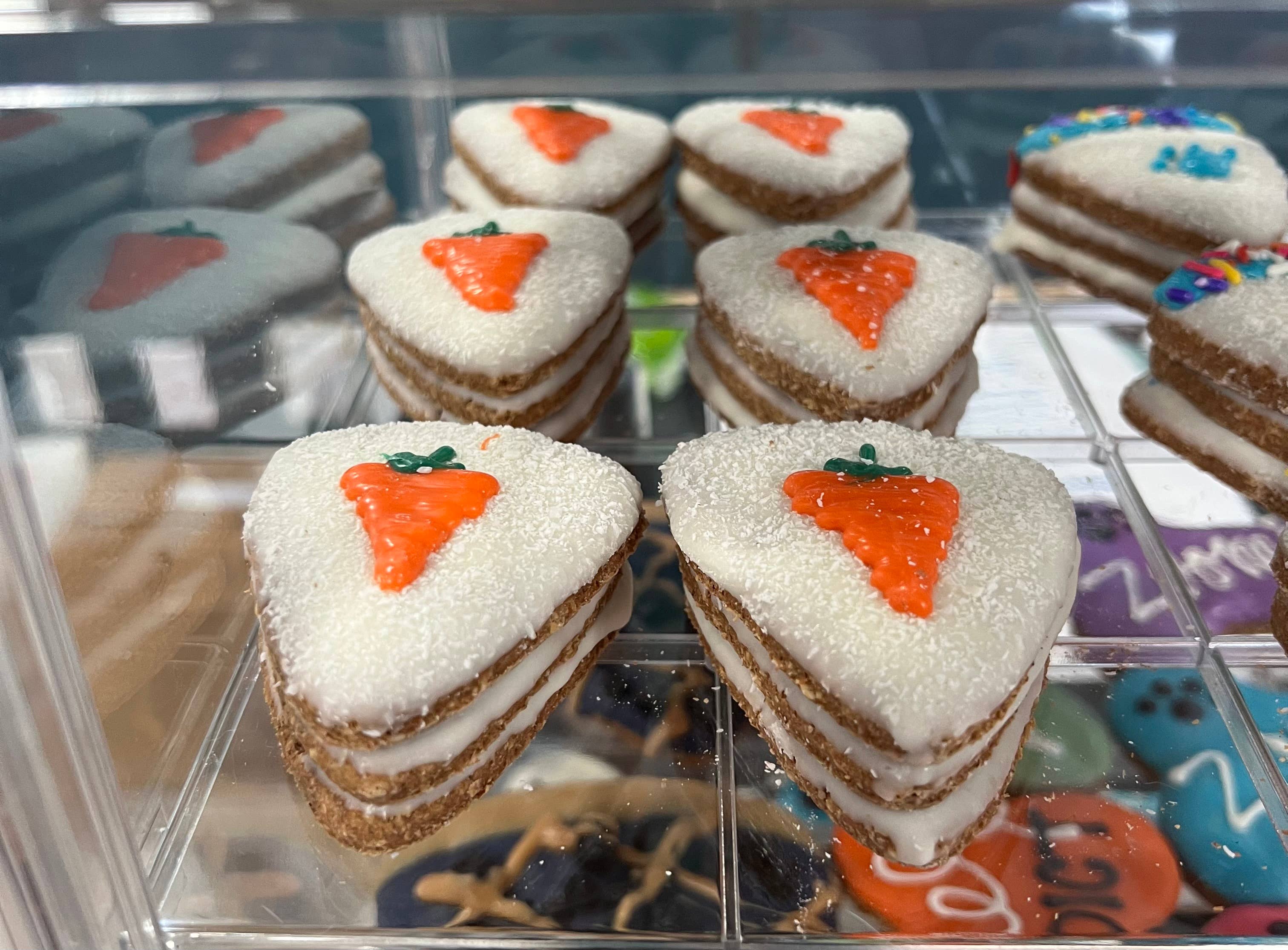 This bone is not only unique to YumYum4dogs, it is delicious & nutritious funny treat that owners can feel good about treating to pup on their big day! Our pup has been zooming her whole life & yours probably is too lol! She’s 100% a Zoomie Addict! Handcrafted from only quality all natural ingredients, all yumyum4dogs are baked with love in small batches. This bone is a 6 inch bone hand dipped in natural yogurt icing, the sprinkled with human grade jimmies. Case includes 2 of each color (blue, pink, yellow, green, purple & orange) with ZOOMIE ADDICT & ZOOMIE 24/7 Store treats at no greater than 72 degrees out of direct light to avoid meltage. 6-12 month shelf life if stored properly (out of direct light, in cool, dry area) Ingredients: Peanut Butter, Whole Wheat Flour, Canola Oil, Cinnamon, Oats, Eggs and Honey. Crude Analysis: Crude Protein (min.)..13.0% Crude Fat (min.).........10.0% Crude Fiber (max.)......2.2% Moisture (max)……….…3.5%