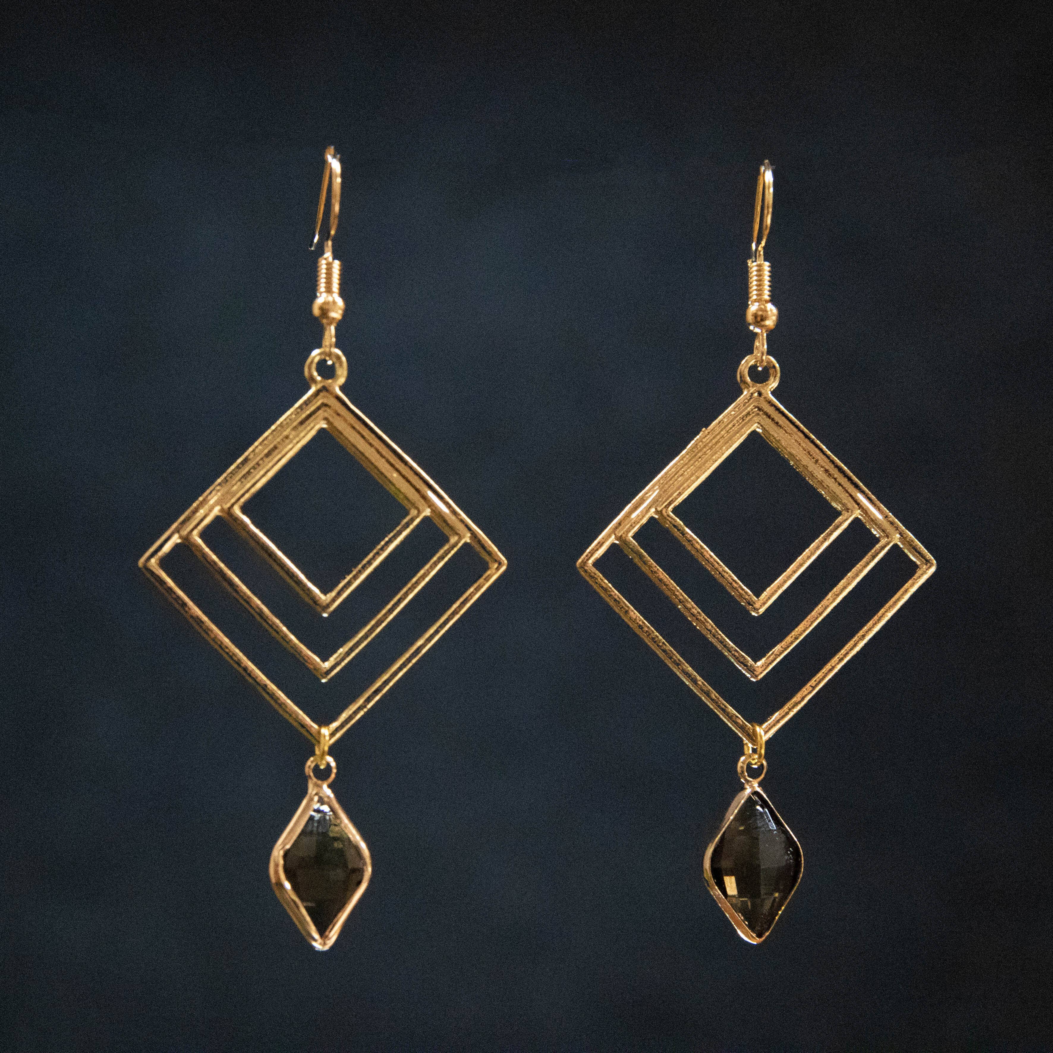 Beaded earrings made from stone beads, brass charms and zinc alloy ear wires. Hypo-allergenic ear wires