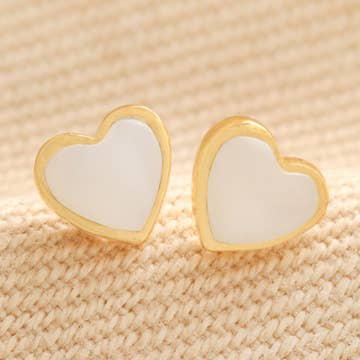 Gold Sterling Silver Mother of Pearl Heart Stud Earrings