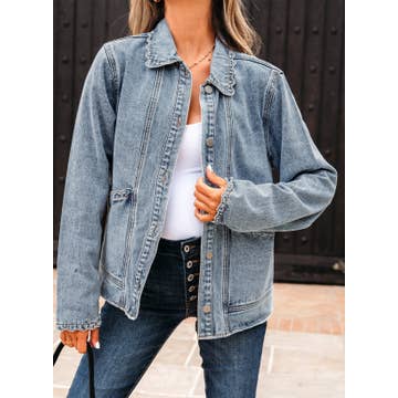 Classic denim jacket with a cozy faux fur collar. Perfect for layering in cool weather. Fabric: 95% ,Polyester,5% ,Spandex Weight: 2.42 lb