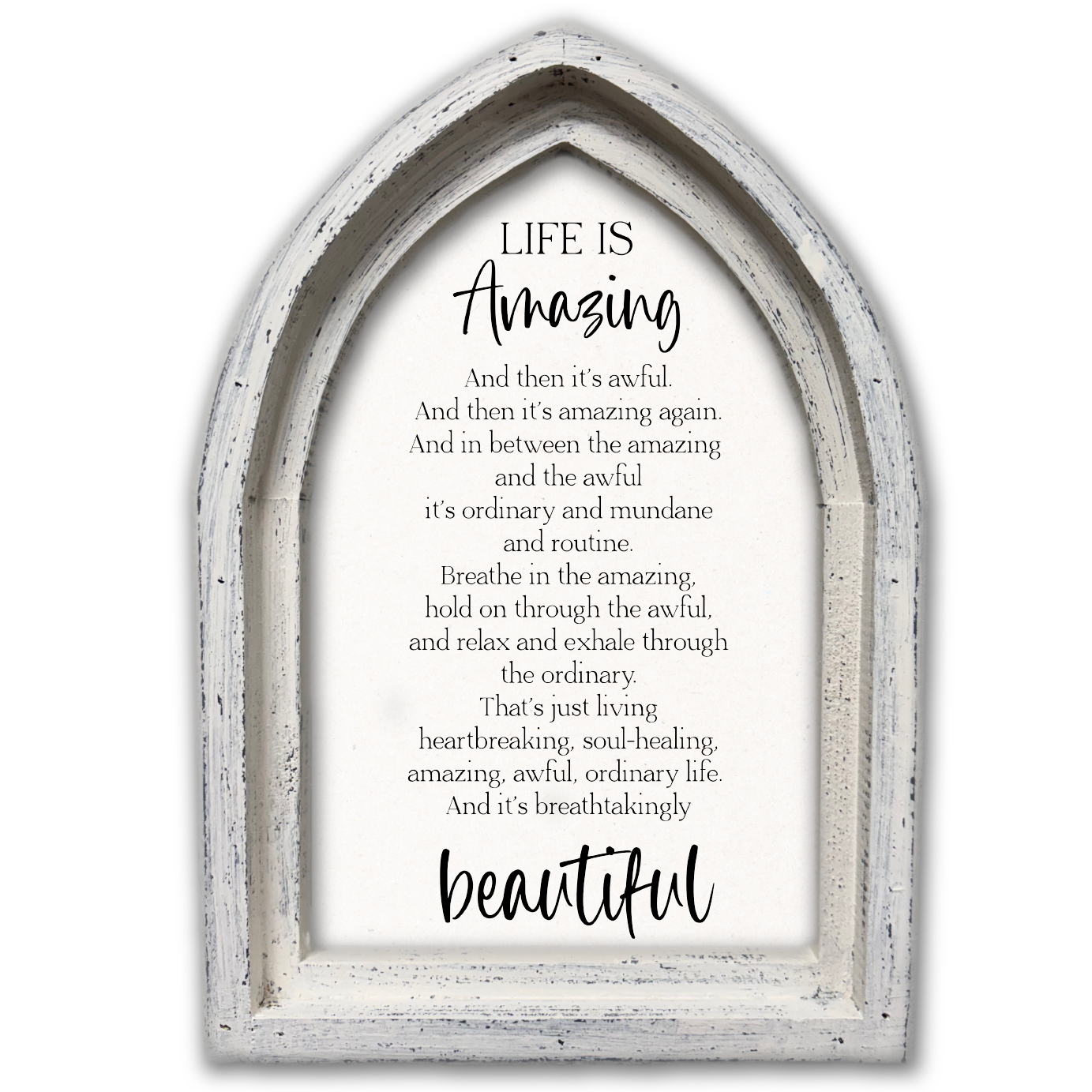Life is tough but so are you framed wall/tabletop art 10 x 8 be inspired every day by the simple words on this framed art piece: "Life is tough but so are you." words are on the underside of glass that's raised 5/8" above the striped print background. The words cast a soft shadow on the print, creating a pleasing dimensional effect. Print and glass are 10" x 8"; outer size of the black wood frame is 11" x 9" x 1 3/8". Pull-out easel plus hanger for wall on back. Assembled in the US of imported materials.
