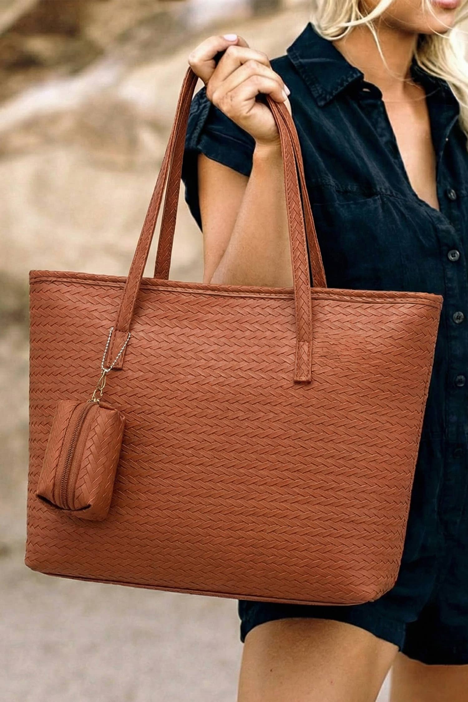Versatile, stylish, and sustainably made, the All Day Tote is your go-to leather bag for every part of your day. Handcrafted from responsibly sourced surplus leather with beautifully handwoven panels, this timeless tote offers four distinct ways to wear it, adapting effortlessly to your workday, errands, or weekend plans. Each bag is one of a kind, with natural variations in color and texture that reflect its artisan-made character. Whether you're commuting, traveling, or heading out for brunch, this affordable luxury tote is made to keep up, without compromising on style or values.