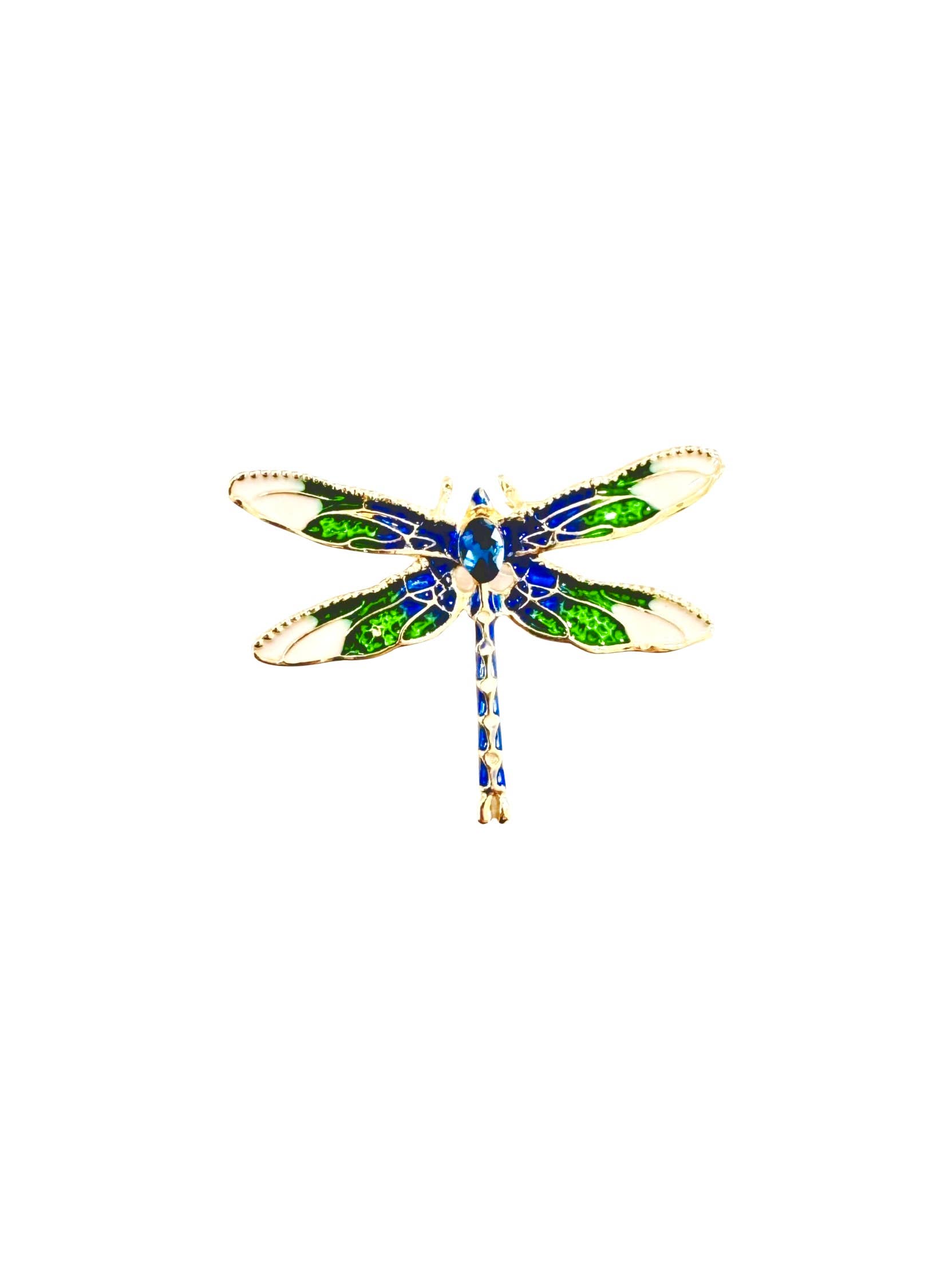 • Size : 3.5" X 3.25" • Magnetic Closure • No Pinhole Damage • This exquisite dragonfly brooch showcases stunning handcrafted enamel wings that capture artistic elegance and charm. A beautiful statement accessory, it brings a touch of sophistication and nature-inspired allure to jackets, scarves, or evening attire. • Lead and Nickel Compliant