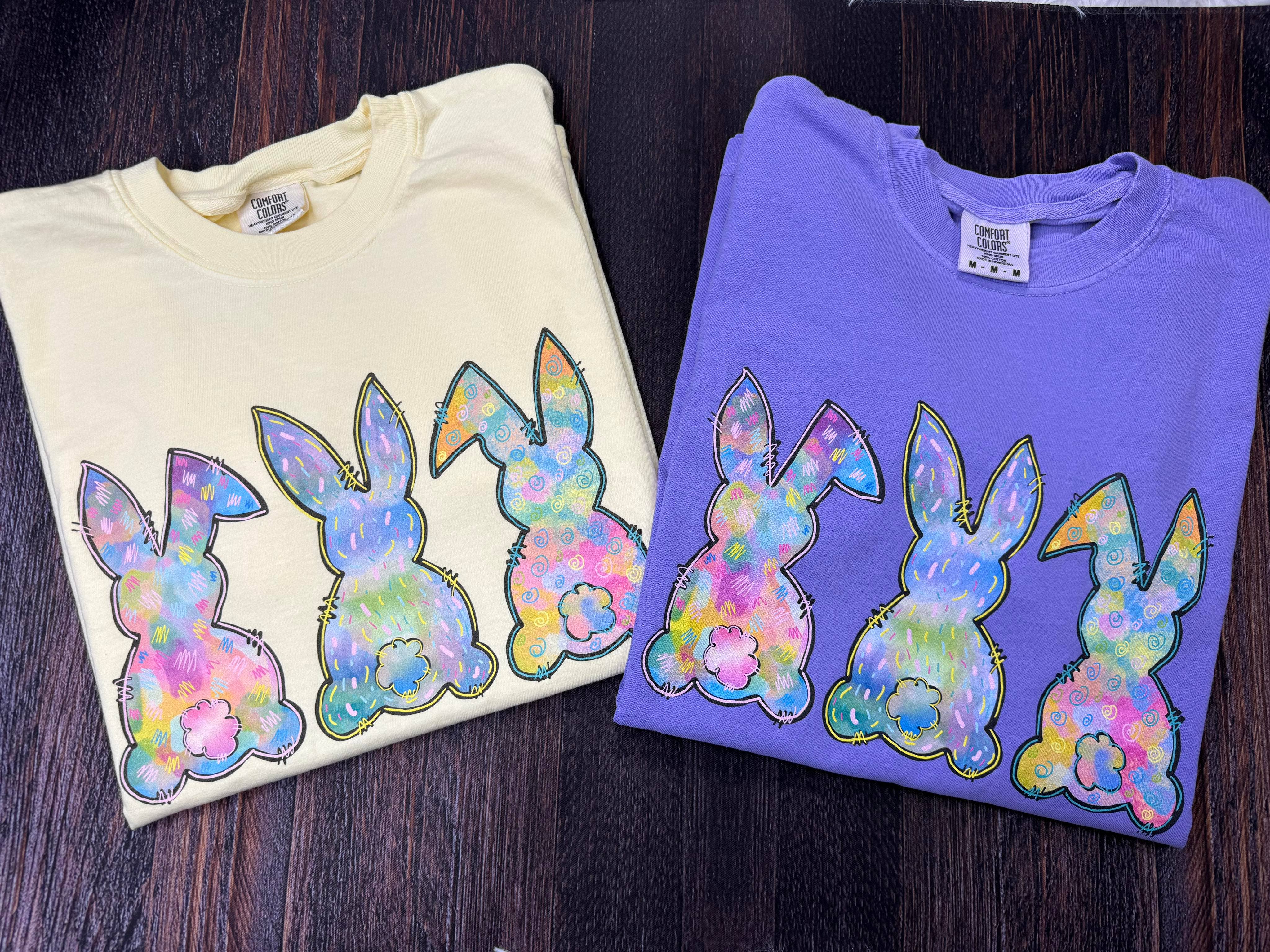Easter Bunny Graphic Tee - Comfort Colors * 100% Cotton * Unisex fit  * True to size Washing Instructions: To keep your shirt's design as beautiful as possible, we do recommend washing this garment inside out on the gentle cycle with cold or lukewarm water. You can either tumble dry low or hang dry.