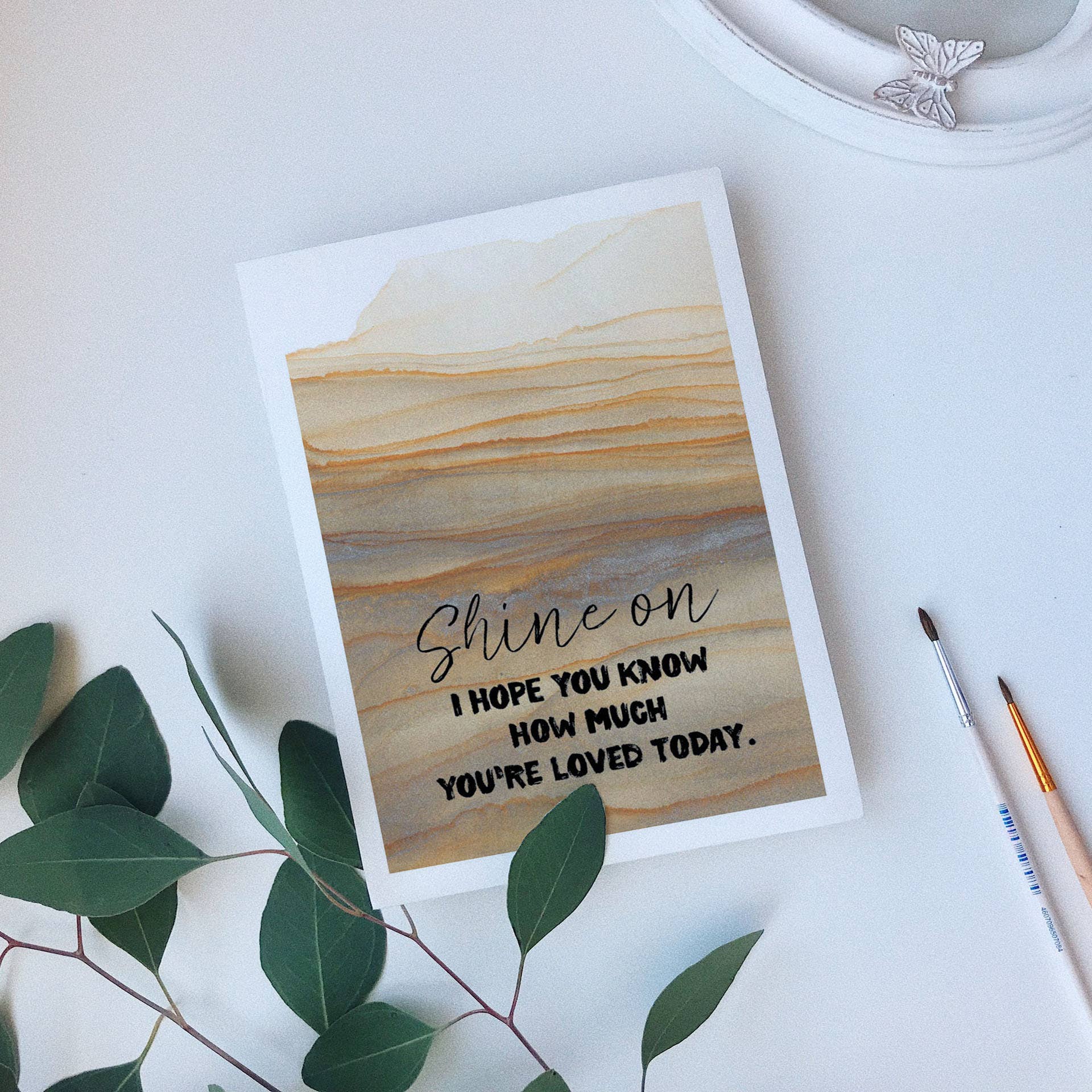 blank inside A beautiful birthday card for the beautiful daughter who adds so much sunshine to your life. This sunflower design and empowering and heartfelt message will make her feel celebrated and loved. 5x7 folded card brown kraft envelope plastic sleeve