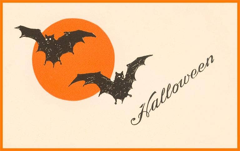 Retro/vintage Halloween vampire bat motorcycle club style sticker. laminated matte vinyl weatherproof 5.25" W x 3.5" H