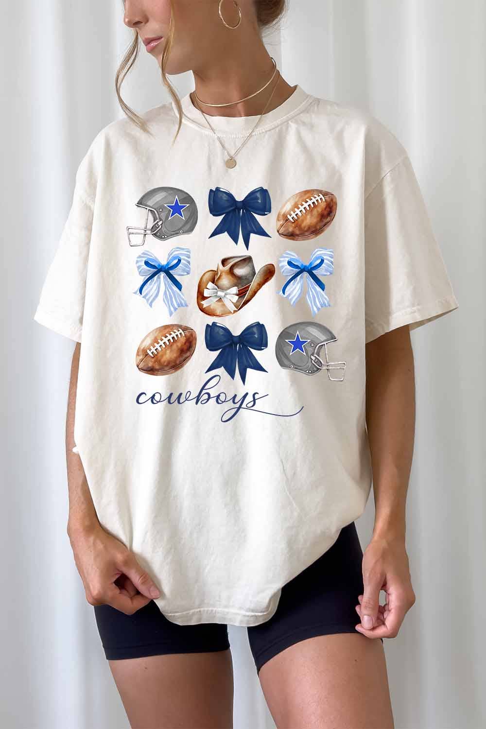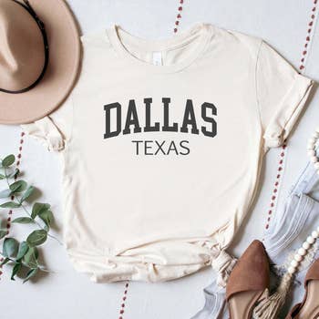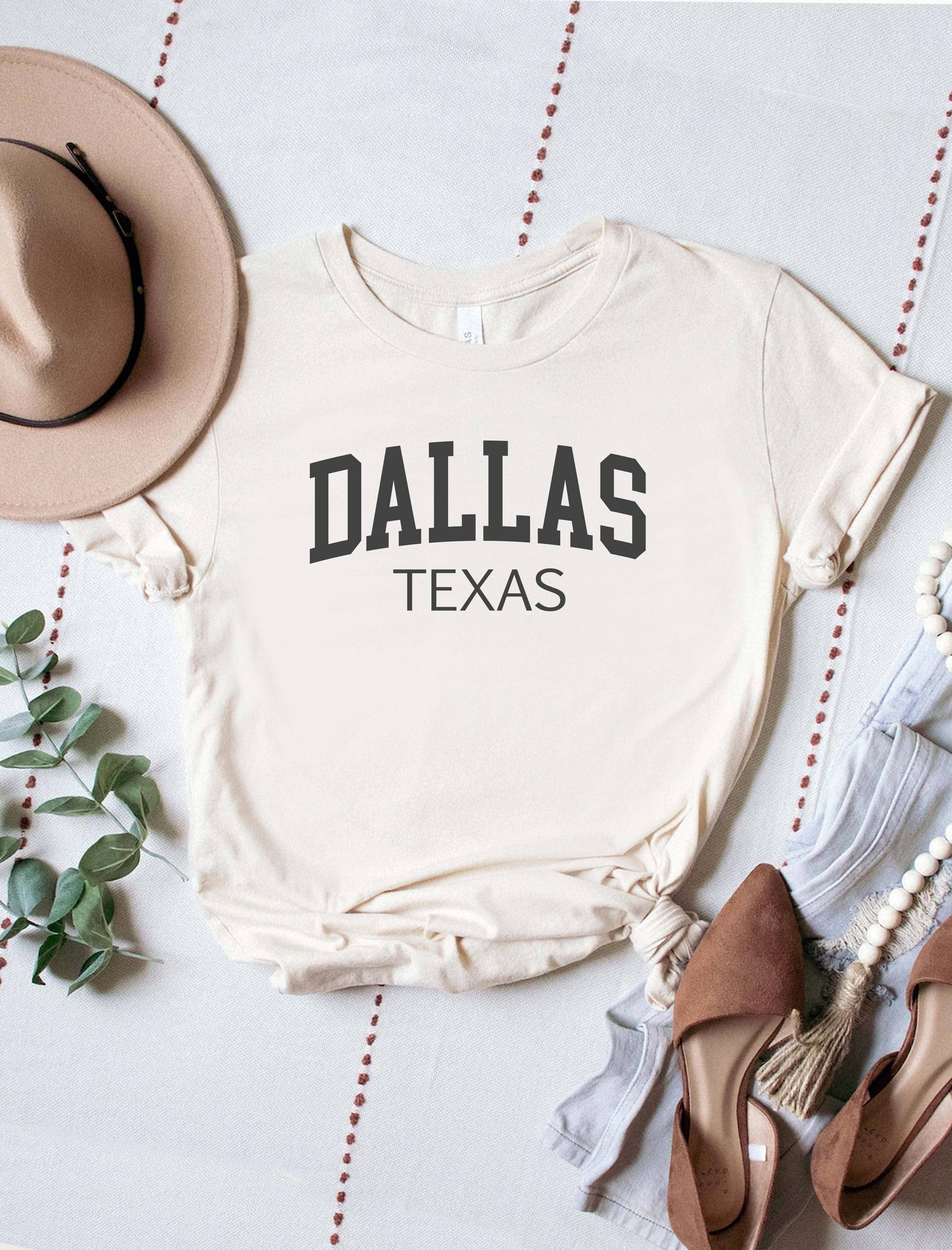 Show the love for your favorite team in this Dallas Football boxy cotton tshirt that is inspired by vintage 90s N F L tshirts! - Features Dallas Football across the top with a football helmet and '60 with Dallas, Texas USA underneath all in a navy and grey ink - Screen print transfer that is heat pressed onto each tshirt - Printed on a vintage wash, super soft tshirt that gets softer with each wash - 100% Cotton - Regular Boxy Fit - Size up 1 to 2 sizes for an oversized fit - Made in the USA **due to screens & filters color may vary from pictures** ** NOT AFFILIATED WITH ANY PROFESSIONAL SPORTS ORGANIZATIONS **