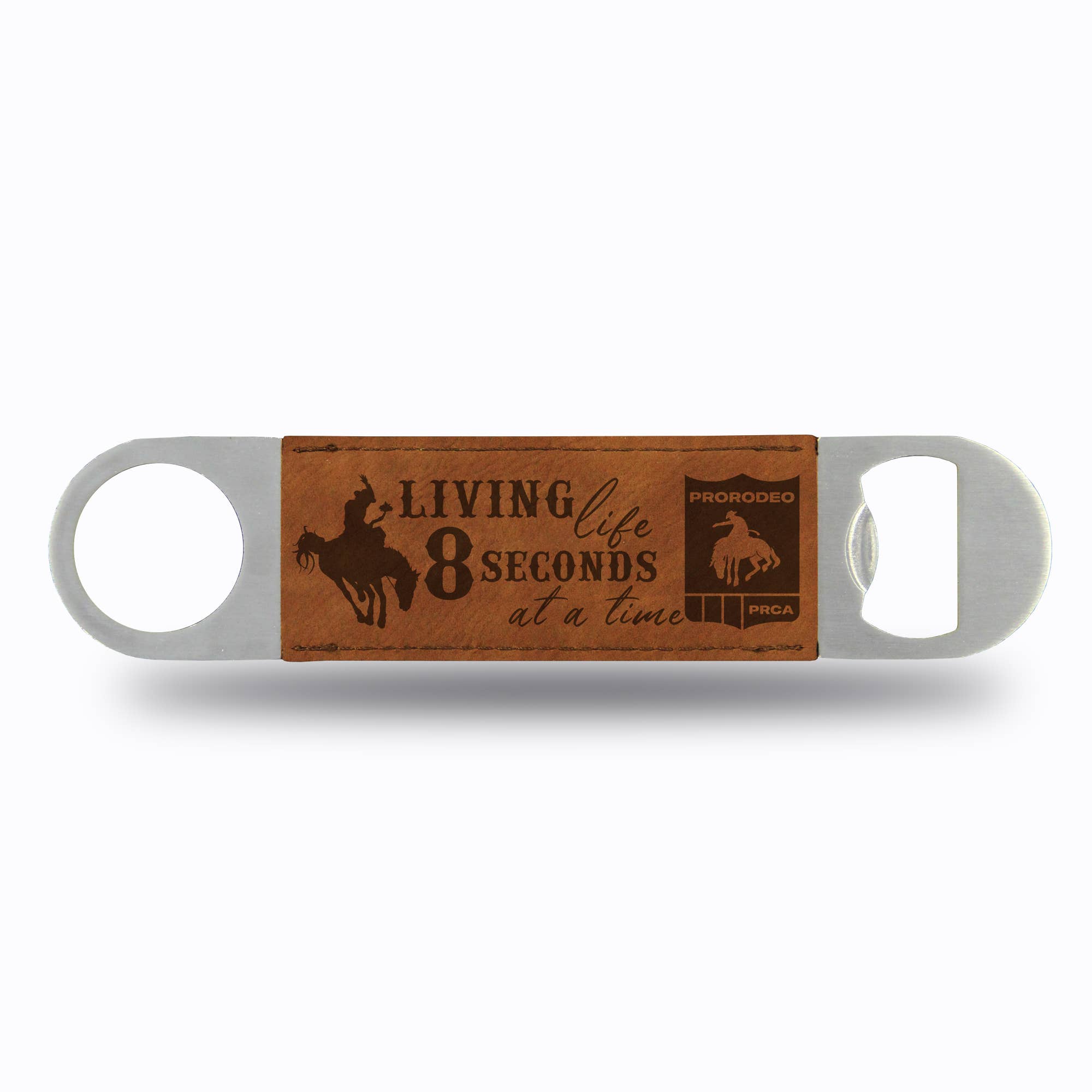 Stainless steel bottle opener with "Happy Camper" on the front and a magnetic strip on the back. Size: 7" x 1.65" x .10". Available in Stainless Steel finish or Black Powder Coated finish.