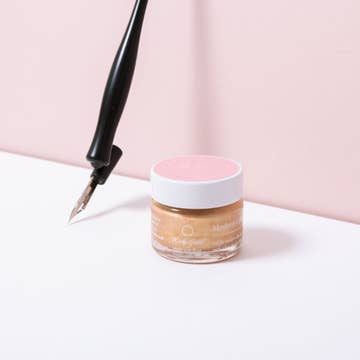 This ink is handmade in our London studio using natural mica powder and natural binders to create a super opaque shimmery ink perfect for modern calligraphy. Unlike other inks, this ink has been especially designed to keep the shimmer mixed within the ink whilst in use to avoid the need to be shaken every 10 minutes. This ink has been designed for use with a dip pen. 15ml