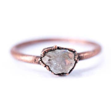 ||You will receive a ring similar to the ones photographed above!|| This Raw Sunstone Ring is unique and one of a kind. The metal delicately accents the raw stone, bringing out its natural beauty. All our rings feature a base metal of copper, which is carefully formed around the ring using a process that can take anywhere from 8 to 32 hours. Once that is complete, we file and sand it to the desired shape and texture. Only then do we tumble and polish it to a mirror finish. The spiritual meaning of Sunstone is the representation of the ultimate energetic source of light, warmth, and life on our planet.