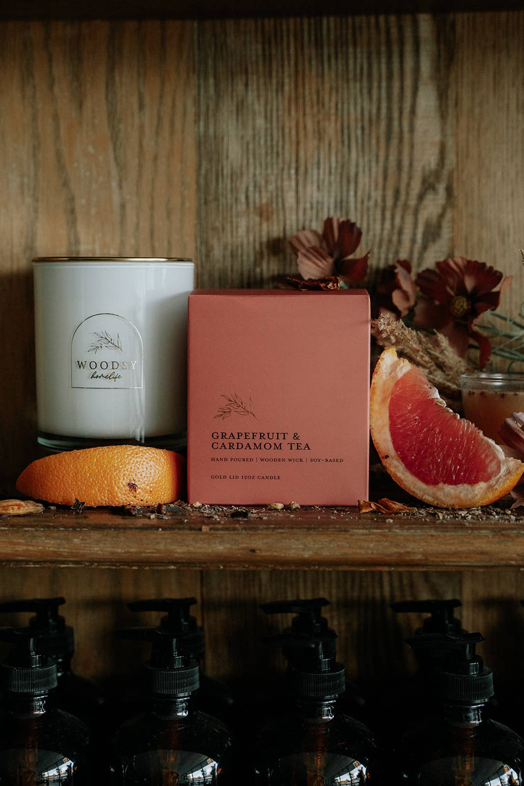 An uplifting citrus wellness blend of grapefruit, orange, bergamot and lemongrass. The "Apothecary Collection" is an aromatherapy blend of soy, beeswax, essential oils, artisan fragrance then finished with dried flowers and herbs. This recycled glass vessel and cork closure also make great reusable storage containers. 16 oz. Candle + 120 hour burn time *This product contains vanillin, an organic compound that will yellow in direct sunlight. We recommend keeping fragrant products away from windows as sunlight will increase oxidation and impact the aroma.