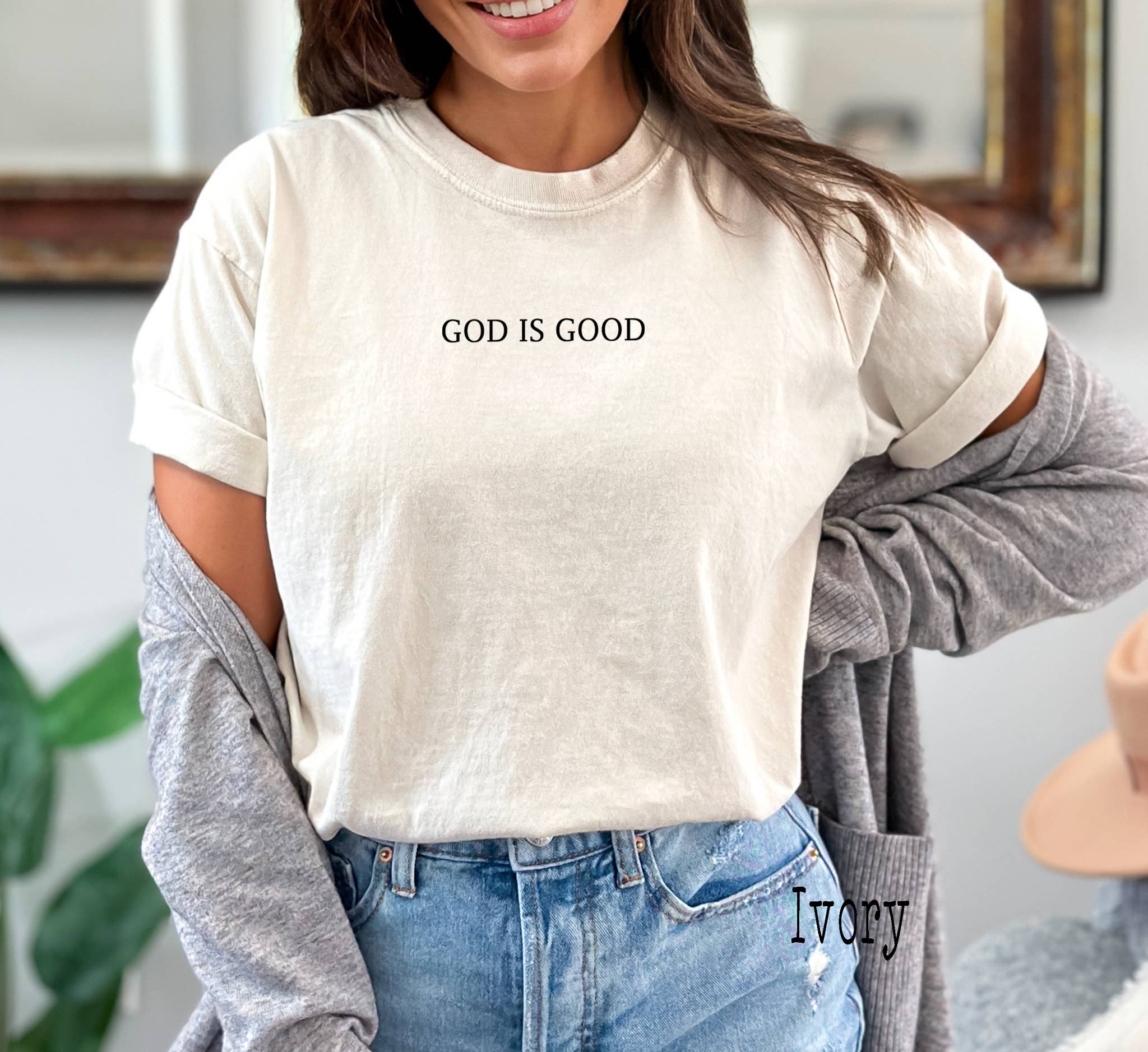 GOD IS GOOD Collegiate Graphic Tee || Christian Graphic Tee || Collegiate Style Tee || Unisex Top || Short Sleeve Tee GOD IS GOOD Collegiate Varsity T-shirt GRAPHIC DETAILS: Graphic: GOD IS GOOD Graphic Color: Sage, Ivory, Black, Grey, Cactus Teal Graphic Placement: Front/Center Graphic Size: 11.00 x 3.98 (inches) Tshirt Details: Colors: Sage, Ivory, Black, Grey, Cactus Teal Material: 100% Cotton Sizing: Unisex (sizes will vary depending on the sweatshirt brand we use; see sizing details in the photos) More Details: This item is MADE TO ORDER; please allow the allotted time to prep & process (see turn around time details in the shipping & returns tab on the listing) This item cannot be customized Wash & Care: -Wash inside out in a cold gentle cycle & dry on low heat. Processing/Turnaround Time: -Processing/Turn around times may vary. Please check the estimated shipping/delivery times. -Processing/Turn around time DOES NOT include shipping time.