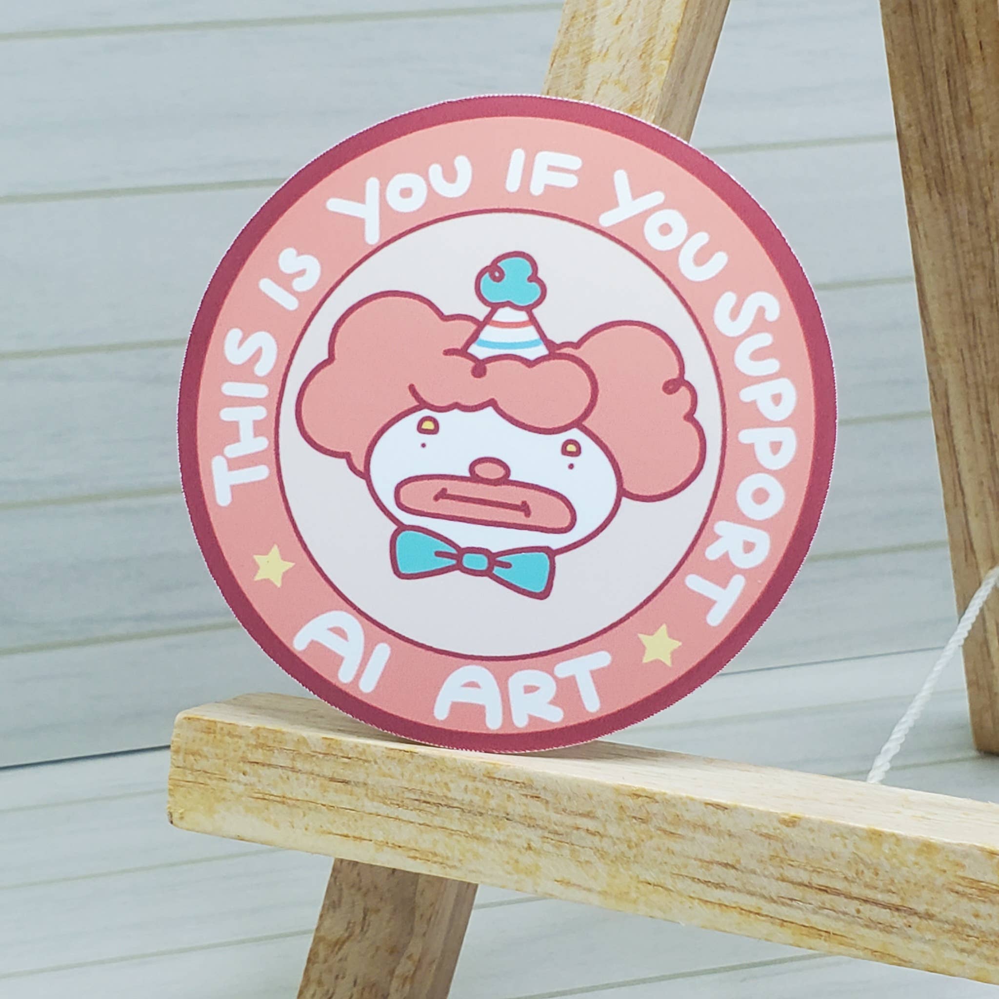 SKU: ST093 Made in Canada Audience: Everyone Color: Pink and White Is Set: Individual Occasion Theme: Everyday Season: Year-Round Special Feature: Glossy, Vinyl, and Waterproof Theme: Animals Tone: Funny Product Language: English Weight: 0.01 g (0 oz) Dimensions: 7.6 x 6.4 cm (3 x 2.5 in)