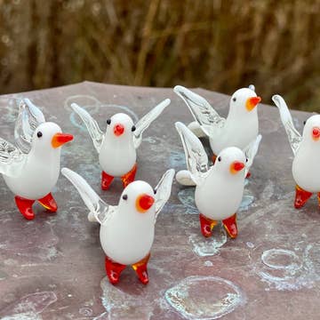 Hand made wooden ornament. Mini Puffin. Entirely hand crafted from delicate carving to detailed painting, and finishing with wax polish. Fairly traded using sustainable softwood and non toxic paints. Designed in Canada by Aviologie. We have other puffins and lots of "mini' birds in our range