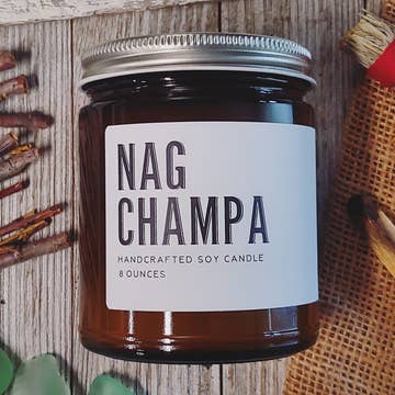 Spicy, floral, and oh-so-earthy: the Nag Champa candle is essential in your year-round candle lineup. Enjoy the therapeutic properties of Nag Champa’s aroma and relish in the uniqueness and depth of the notes of musk and vanilla. Nag Champa is a candle you have to smell to believe. SMELLS LIKE: Musk, Vanilla, Geranium Spice BURN TIME: 4oz- 30-35 hours | 9 oz- 45-50 hours Our candles are hand-poured into beautiful reusable glass containers with a gold lid. Our wax of choice is soy wax, and we pair this with ECO wicks which are free from lead and zinc. Our candles are scented with oil blends that are 100% phthalate-free, vegan, and eco-friendly. The oils are never diluted, so each has a strong concentrated aroma that doesn't disappear when burned.