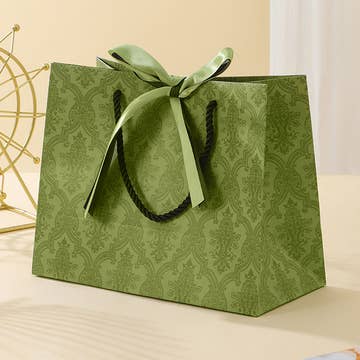 Bamboo cotton reusable gift bag in a Natural Beige tone, gift ready and plastic free. Features a drawstring closure and a bronze organza window. Each bag includes 3 bronze organza wrap fillers, satin ribbon tie, blank kraft gift tag, and a removable whiteboard insert for structure. BAG SIZE AND FIT Large: 10 in W x 14 in H x 5 in D Great for larger gifts, clothing, gift boxes, and gift basket items WHAT’S INCLUDED (PER BAG) (1) Bamboo cotton gift bag, Natural Beige tone, drawstring, organza window (3) Bronze organza wrap fillers, 24 in x 24 in each (1) Satin ribbon tie (1) Blank kraft gift tag (1) Removable whiteboard insert HOW TO USE IN STEPS 1) Lay one organza wrap flat, center the item, gather, and tie with the satin ribbon. 2) Place the wrapped gift into the bag. 3) Add the remaining organza wraps at the opening and fluff for volume. 4) Fill out the kraft tag and cinch the drawstring. CARE AND MATERIALS Bamboo cotton fabric. Spot clean, air dry. Steam lightly if needed. Store flat. GREAT FOR Premium gifting, holiday displays, boutique packaging, and larger gift items.