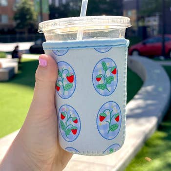 Enjoy both style and functionality with our uniquely designed iced coffee sleeve. Featuring original artwork, this sleeve makes your daily coffee run both tasty and adorable! Coffee Sleeves are reusable, keep your hand from getting sweat from the cup, as well as act as a convenient on the go coaster protecting your surfaces from moisture! Elevate your beverage experience and sip in style with this artistic, practical addition to your routine. -Small Fits 16-20 oz -Medium fits 20-24oz -Tapered design fit both straight sided and tapered beverages (cans and iced coffee cups) *The small does fit glass our glass cans! -Made of soft but sturdy fabric easy to slip in a purse or pocket -Machine washable on delicate