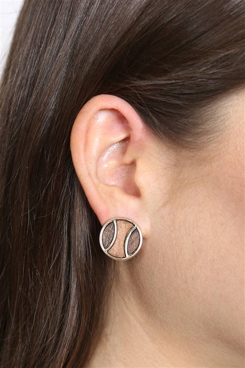Tennis Ball Fabric Button Earrings