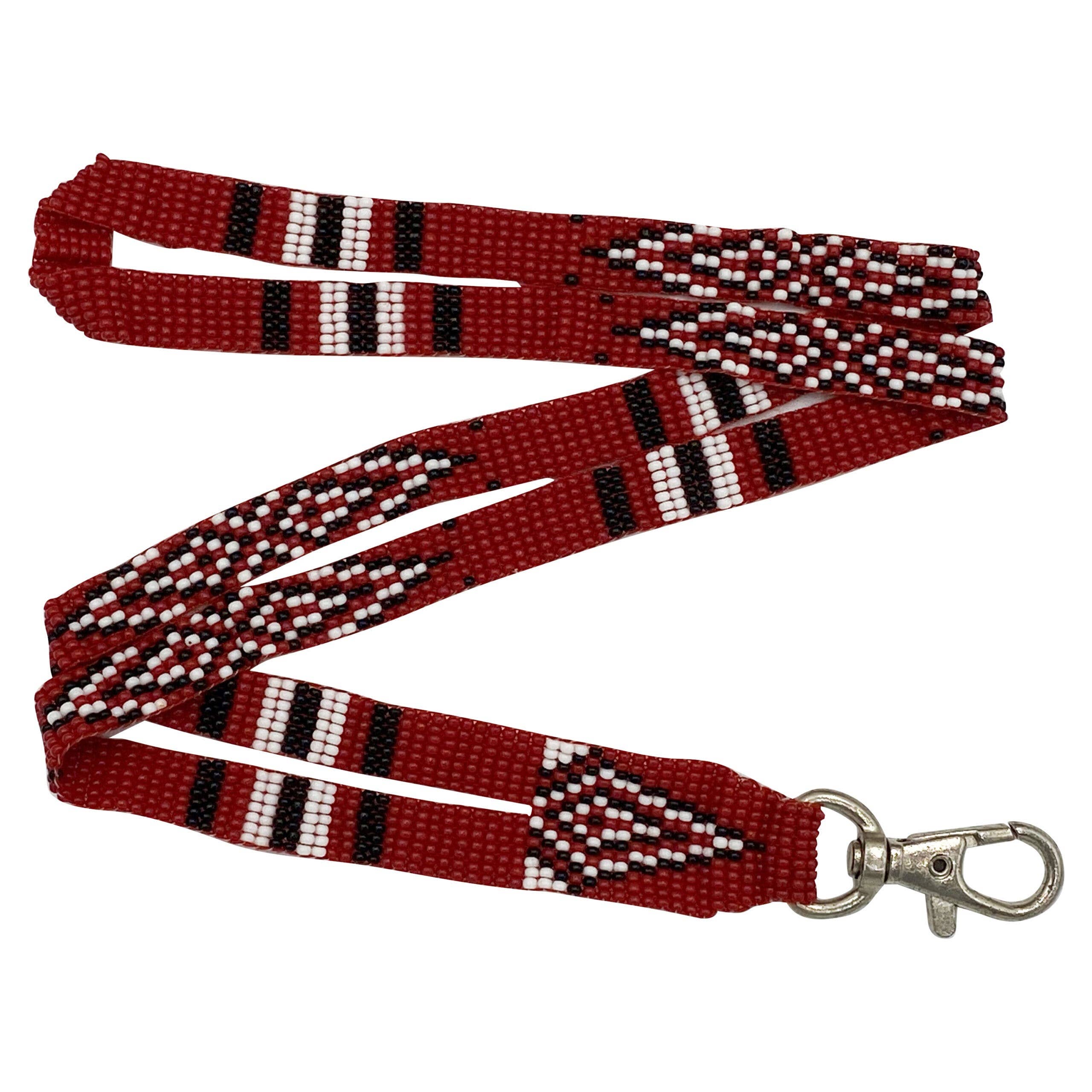 White Blue Red Beaded Id Holder Lanyard Beadwork