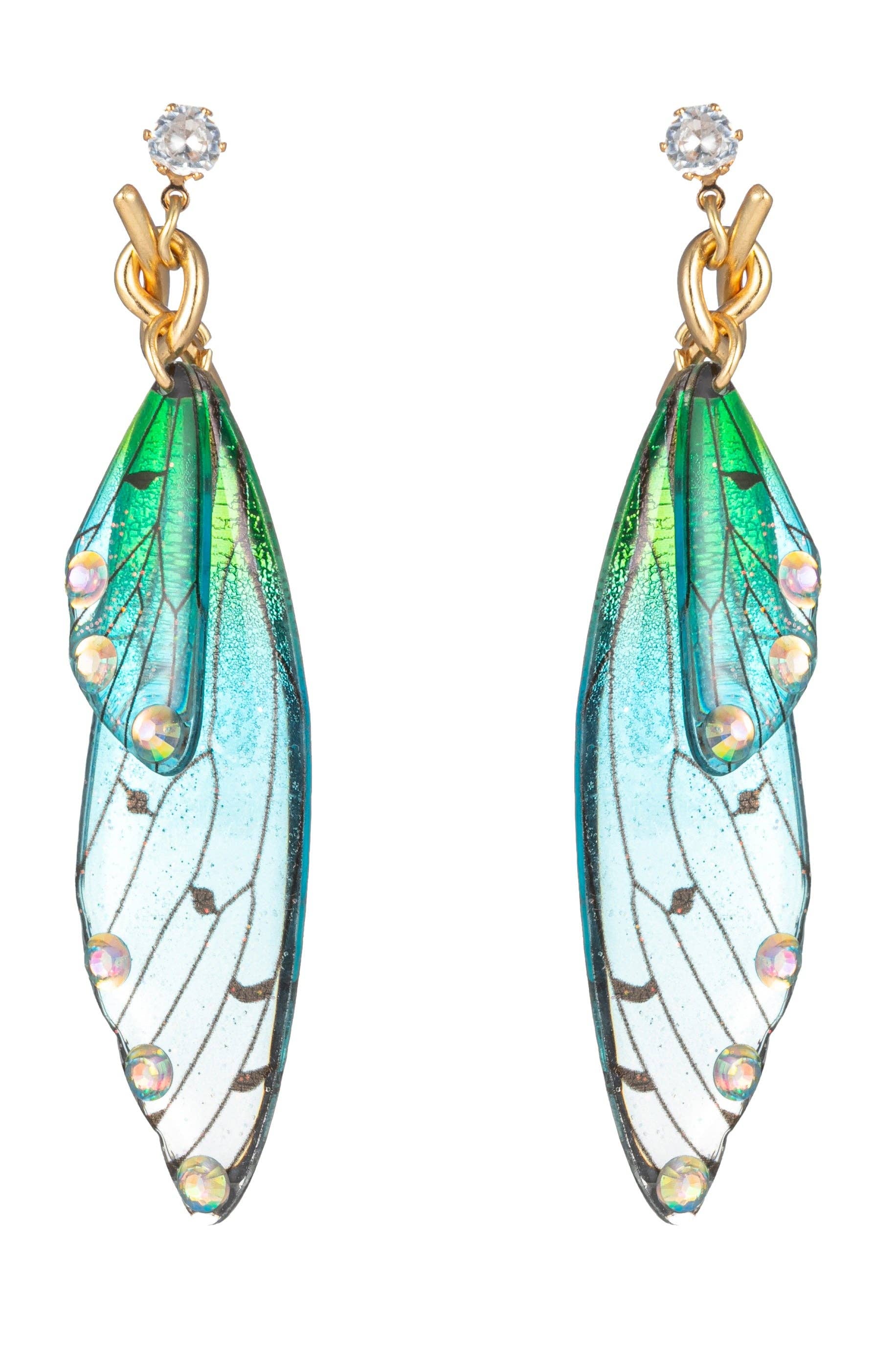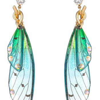 Wholesale Flower Fairy: Hand Painted Long Dragonfly Earrings Crystals