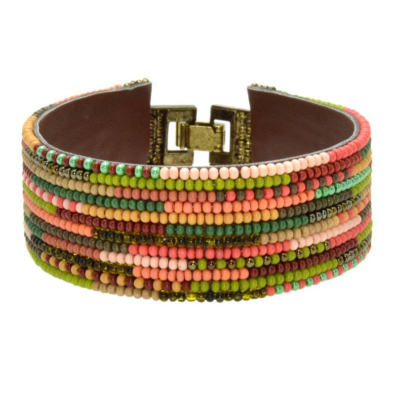 Beach boy or nature guy, you'll love this four piece natural bracelet set. Each strand of leather, cord, or wood beads is perfect enough to wear alone or made all the more amazing together. The ways to wear it are endless. Set of four includes cord wrapped and multi line leather pull bracelets with light and dark wood bead stretch bracelets. 1/2" wide each. Adjustable fit for variety of men's wrist sizes. Hang tag marked "Men's" for clear customer identification. Made in China.