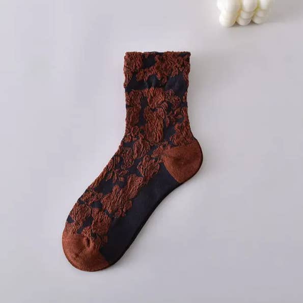Women's retro 3D embossed sweat-absorbent socks