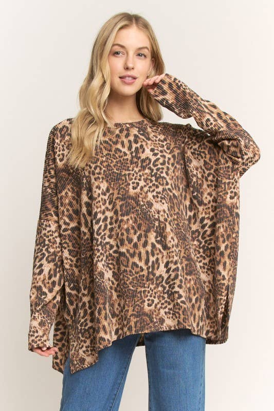 95% POLYESTER 5% SPANDEX LONG SLEEVE ROUND NECK SOLID ANIMAL URBAN RIB TRIM CONTRAST TOP MODEL SIZE: HEIGHT 5'6", BUST 32", WAIST 24", HIPS 32" WEARING SIZE: SMALL *The garment color may differ slightly upon arrival due to being taken with professional lighting also depending on