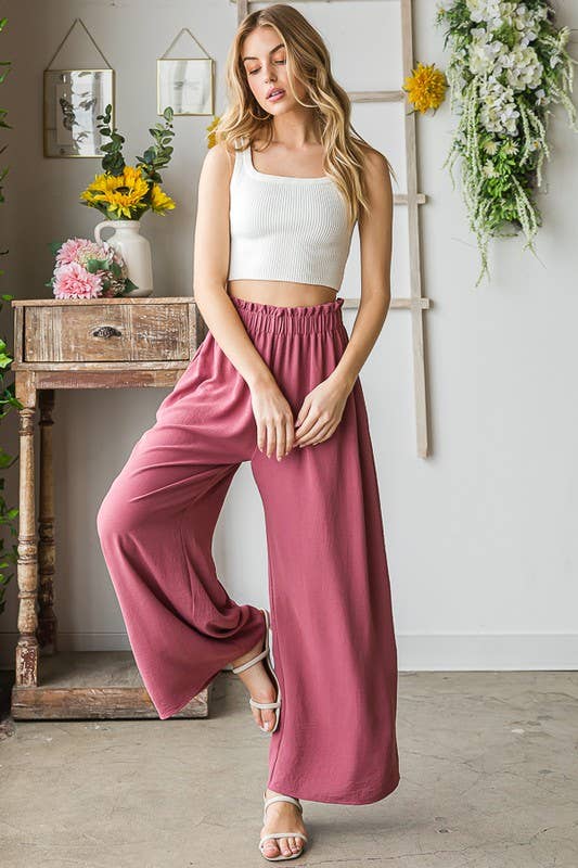 SP7036 - WIDE LEG FLOWY SOLID PULL-ON PANTS