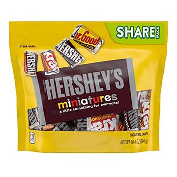 THIS IS FOR ONE BAG OF 180CT There's something for everyone in this HERSHEY'S Miniatures assortment. Find miniature versions of all your favorite HERSHEY'S chocolate bars in one sweet bag, including HERSHEY'S milk chocolate bars, HERSHEY'S SPECIAL DARK mildly sweet chocolate bars, KRACKEL chocolate candy with crisped rice and MR. GOODBAR chocolate candy with peanuts. Enjoy delicious candy classics individually wrapped for lasting freshness and convenience all year long. Perfect for lunch boxes, movie nights, game nights, snack breaks, sharing moments and candy dishes at home and in the office, Contains one 56-ounce bag of HERSHEY'S Miniatures HERSHEY'S Milk Chocolate, HERSHEY'S SPECIAL DARK Mildly Sweet Chocolate, KRACKEL Milk Chocolate with Crisped Rice and MR. GOODBAR Chocolate Candy with Peanuts Fill snack drawers, candy dishes and lunch boxes with variety chocolate candy sure to sweeten any season Certified kosher