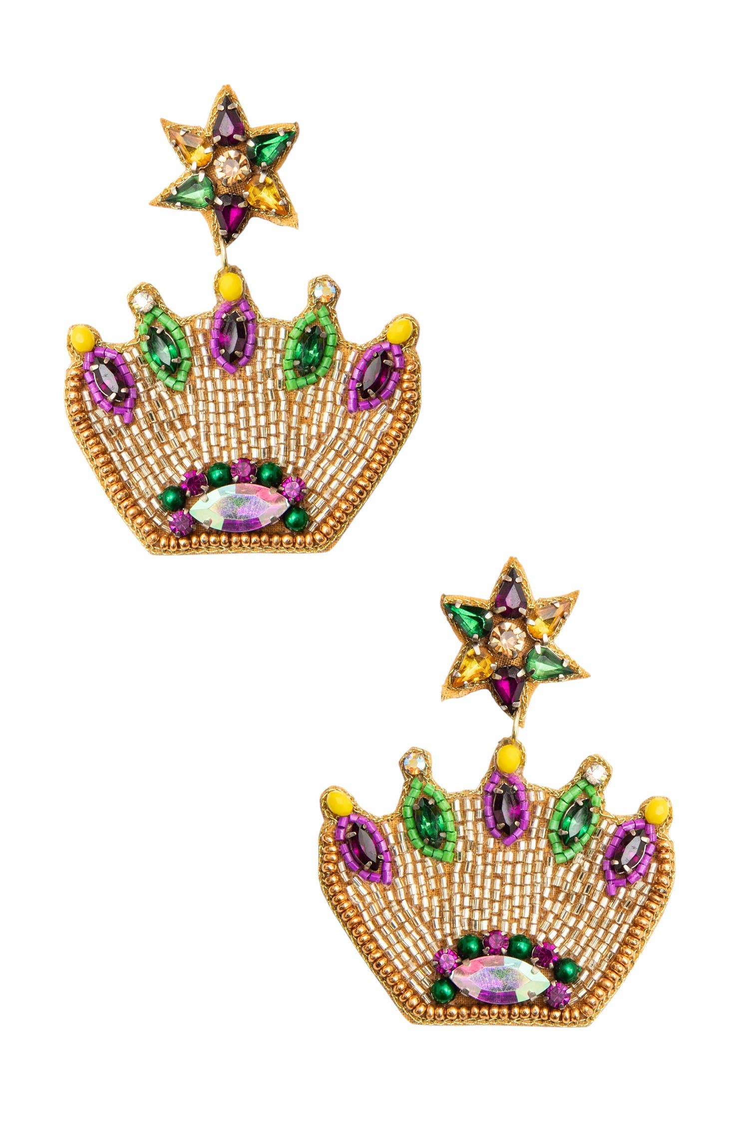 SKU: LLH-053 Made in India Color: Green, Purple, White, Yellow, and Yellow Gold Is Set: Individual Occasion: Carnival and Mardi Gras Style: Culturally-Inspired and Statement Theme: Geography & Hometown Product Language: English Weight: 14.17 g (0.5 oz) Dimensions: 3.8 x 5.1 cm (1.5 x 2 in)