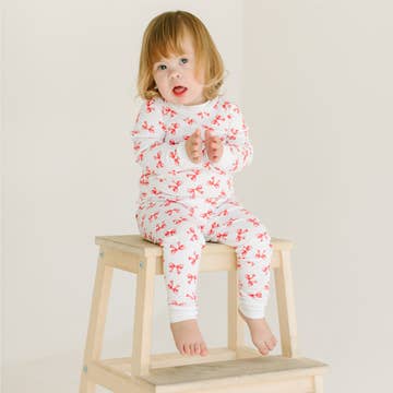 New Jammies - Wholesale Sleepwear Set - Kids - Ribbons and Bows Solid Top Organic Pajamas Christmas