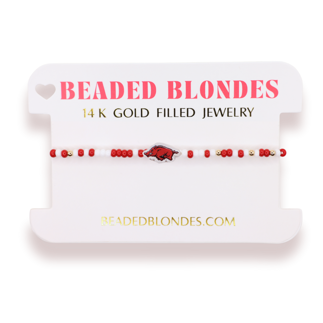Arkansas Razorbacks Ball Bead Stretch Bracelet in Satin Gold