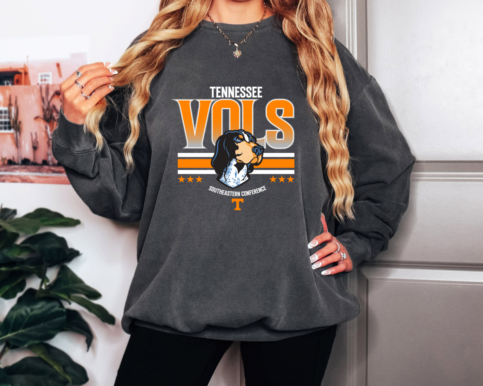 Wholesale Black Leopard Tennessee Football Graphic Crewneck Sweatshirt