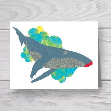 This colorful card was created from Jenny Cohane's original painted art. Each card is designed to look great as a small piece of art on a shelf or framed on a wall. Size is 4.13” x 5.83” and a 16pt thickness. Satin exterior finish and blank on the inside to write your own personal message.