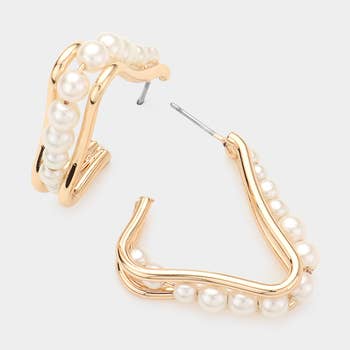 Small, c-shaped hoop earring made of chunky pearls. Features gold-tone accents. -Post Back -1.2" Drop -1.2" Width -Nickel and Lead Compliant (Hypoallergenic)