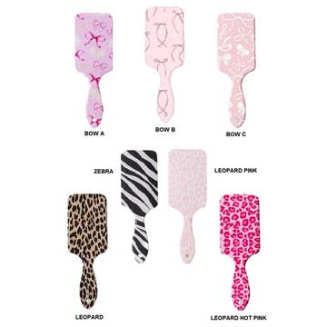 Perfect for any retail space, this elevated brush and comb display is sure to move fast! Includes 12 pcs of each SKU. Including: - Shampoo Comb - Jumbo Rake Comb - Rat Tail Section Comb - Pin Tail Section Comb - Pin Tail Comb - Fist Styling Pic - Plastic Fist Styling Pik - Small Paddle Brush - Large Paddle Brush - Jumbo Paddle Brush In 4 Assorted Patterns: Leopard / Red Leopard / Pink Leopard / Zebra