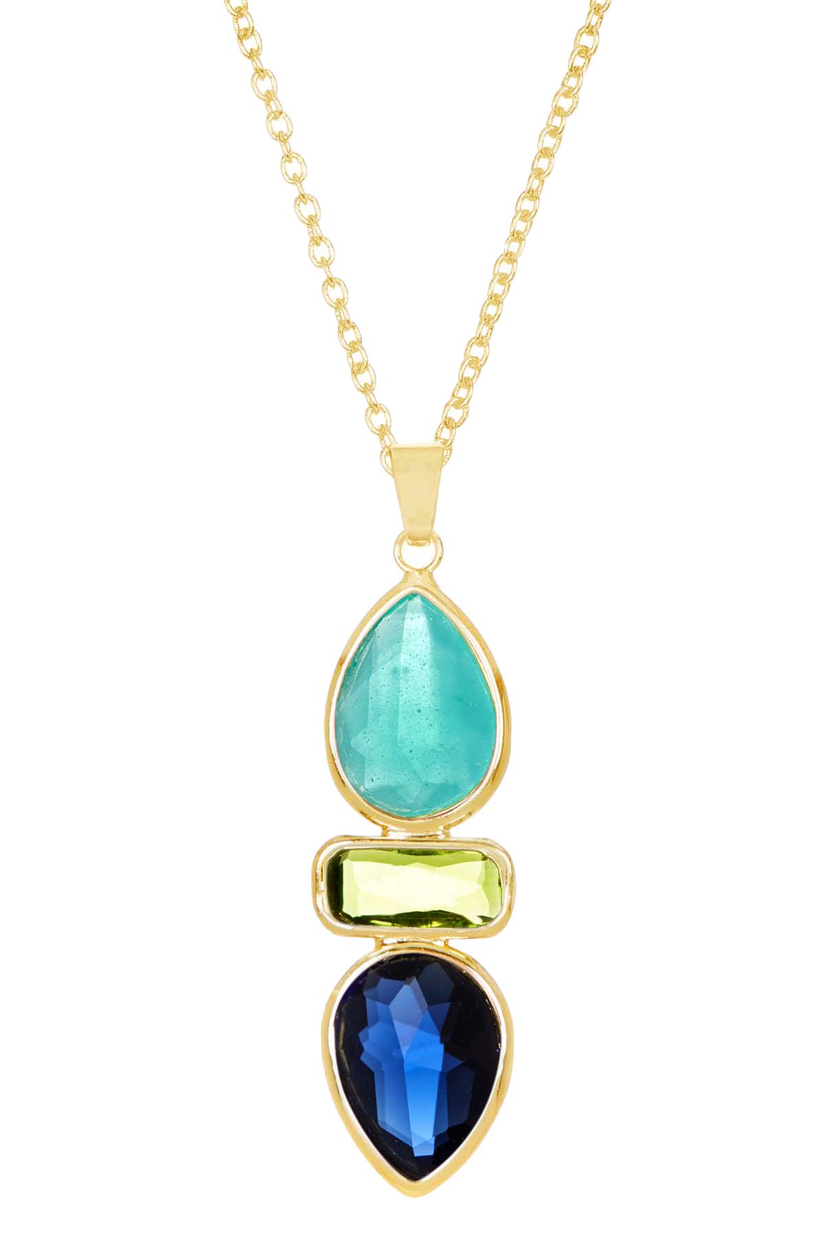 Wholesale Fan Shaped Crystal Pendant in a multi gemstones necklace