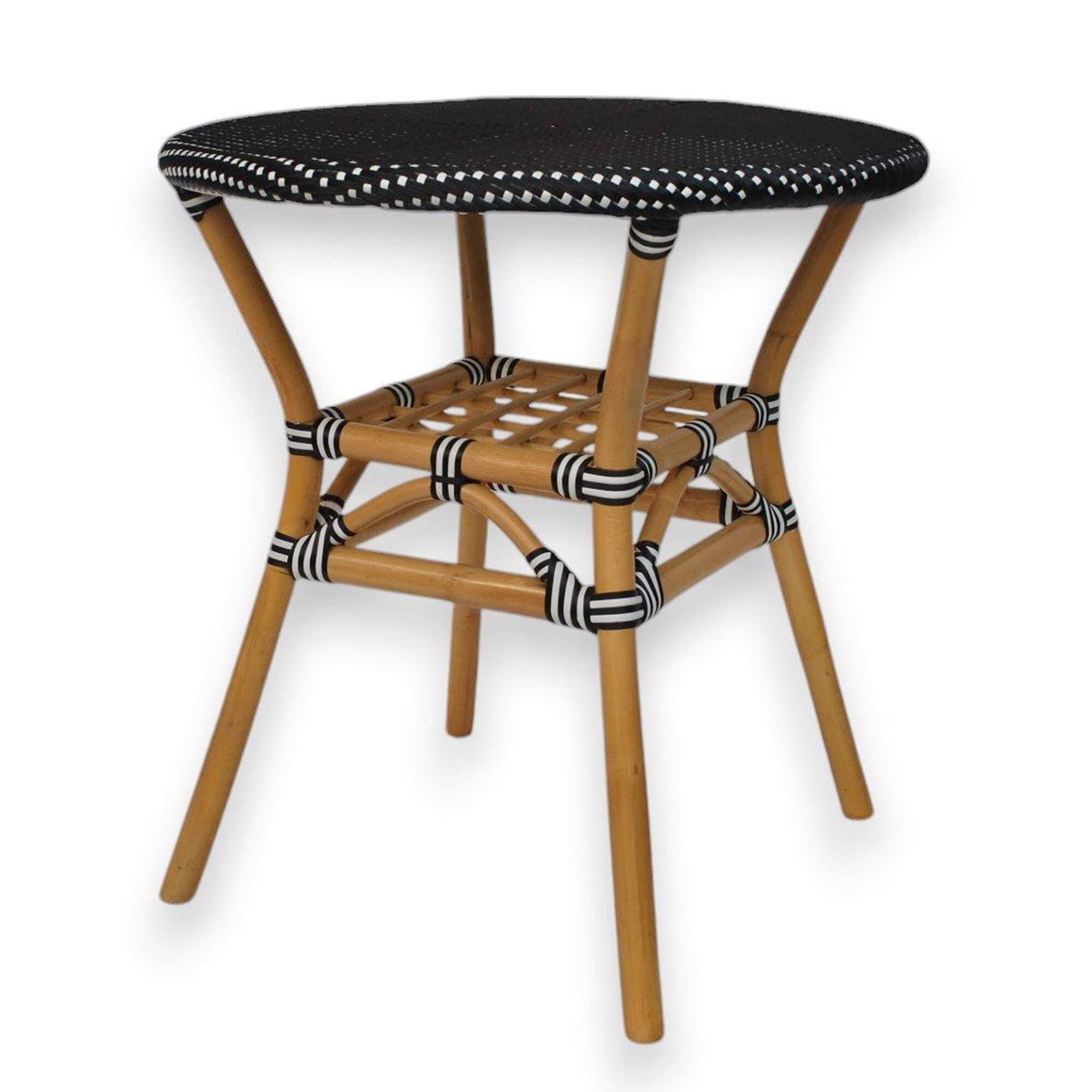 Item Code: FBT13-27-5-BLB Dimensions: 27.5 W X 27.5 D X 30 H An iconic part of the Bistros in Paris, our french Bistro dining tables create the allure of a french sidewalk café. These charming bistro tables, get their authentic look from the strong bent rattan frame and the hand-woven all-weather weave. Matching dining chairs, barstools, and counter stools are available. Please note, actual furniture and fabric colors may slightly differ from photos due to lighting and one's individual monitor settings. Primary materials: rattan Secondary materials: pe plastic all-weather weaving fiber Port of origin: Jakarta